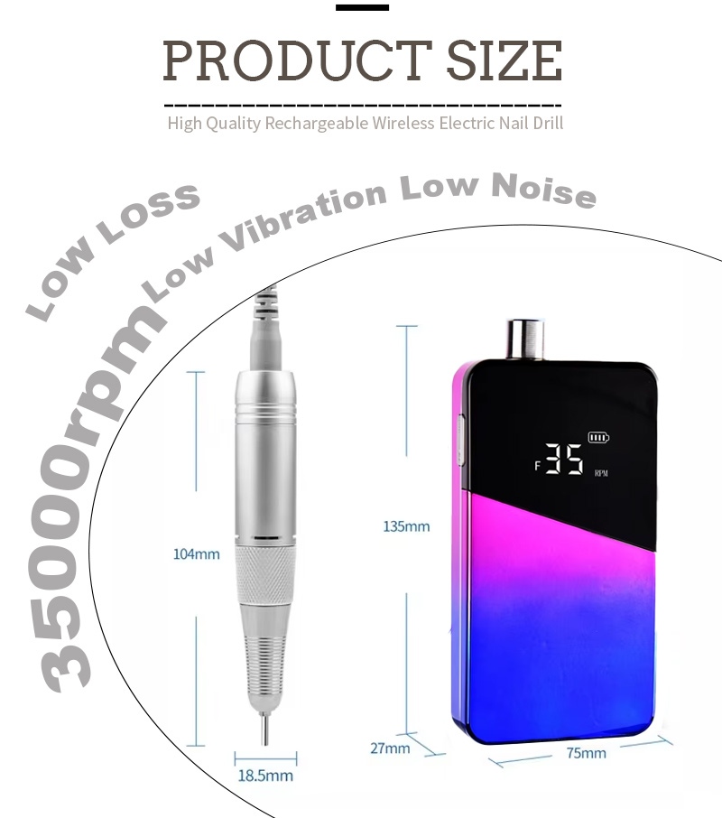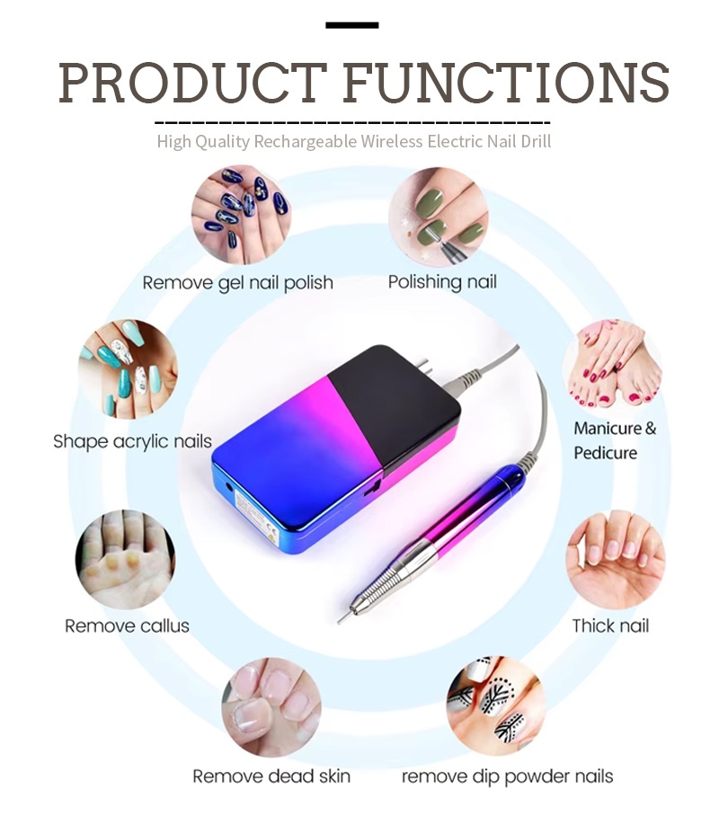 Wannan 30,000 rpm na ƙusa na lantarki yana da launuka 2 don zaɓar daga, baƙi / fari / launin toka / blue / ja / ruwan hoda / orange, launuka masu launi.