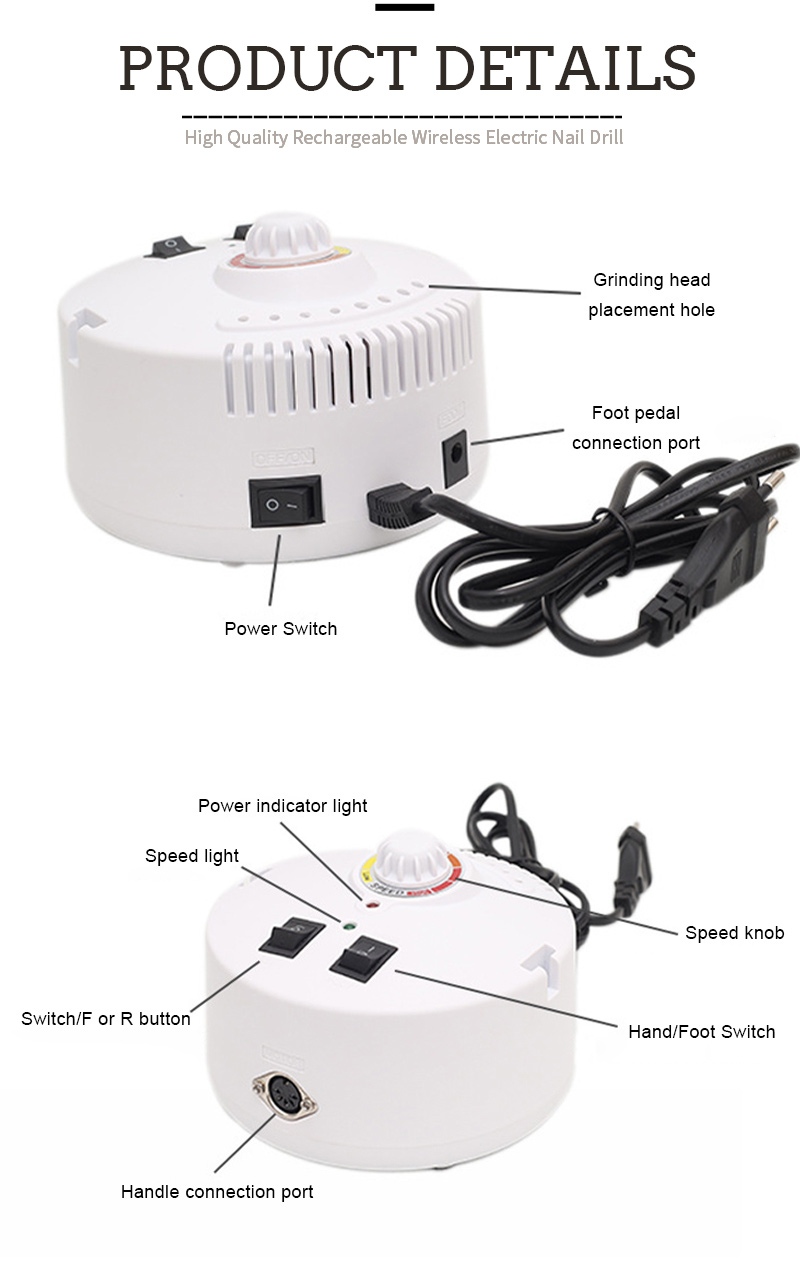 Nail art drills: 80W/65W/60W/45W/35W/25W/15W da dai sauransu.