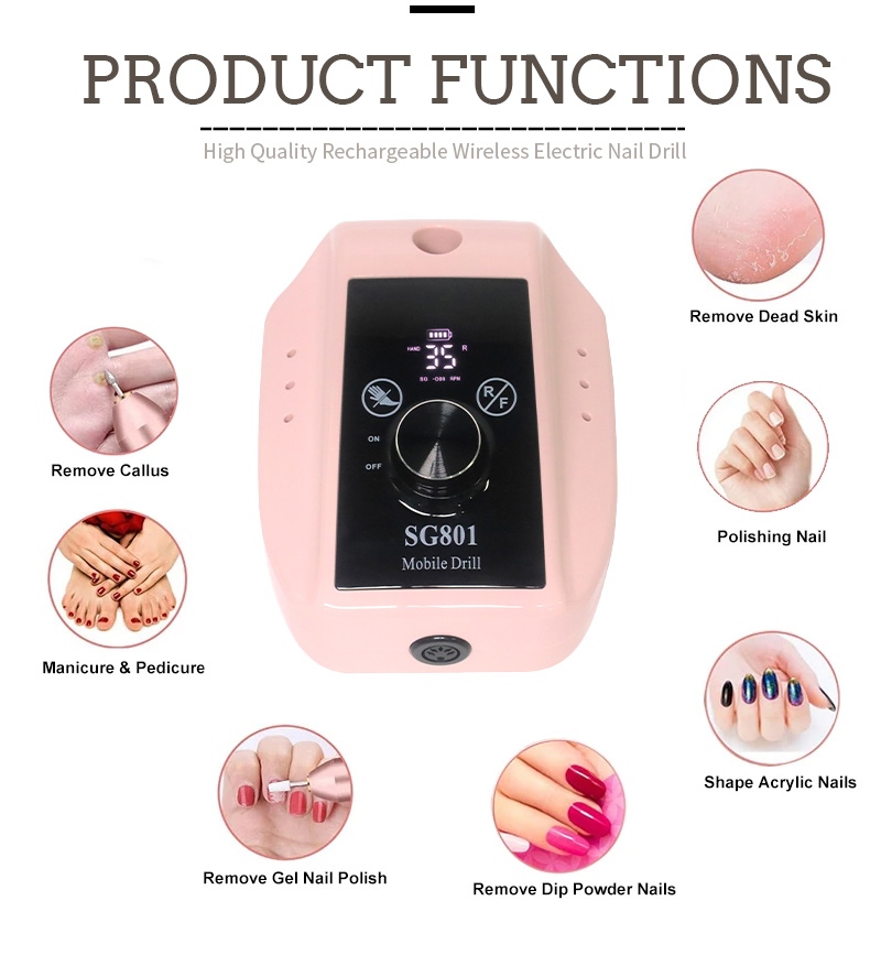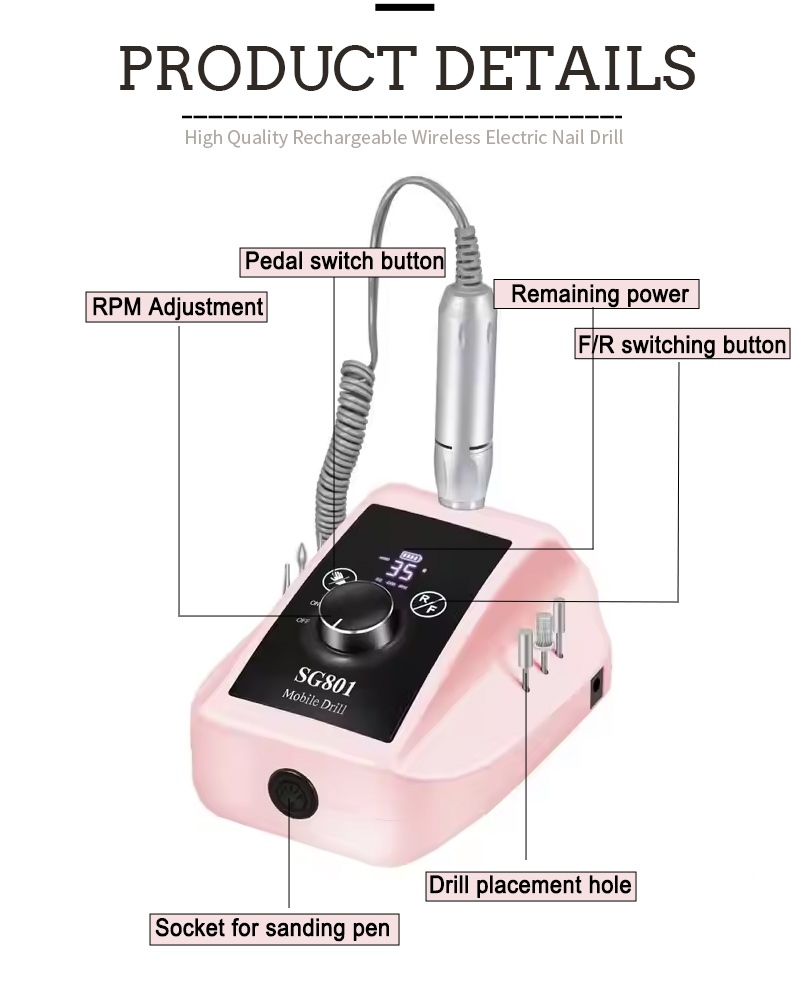 Siffar da Aikace-aikace na 35,000 RPM Electric Portable Gel Nail Drill