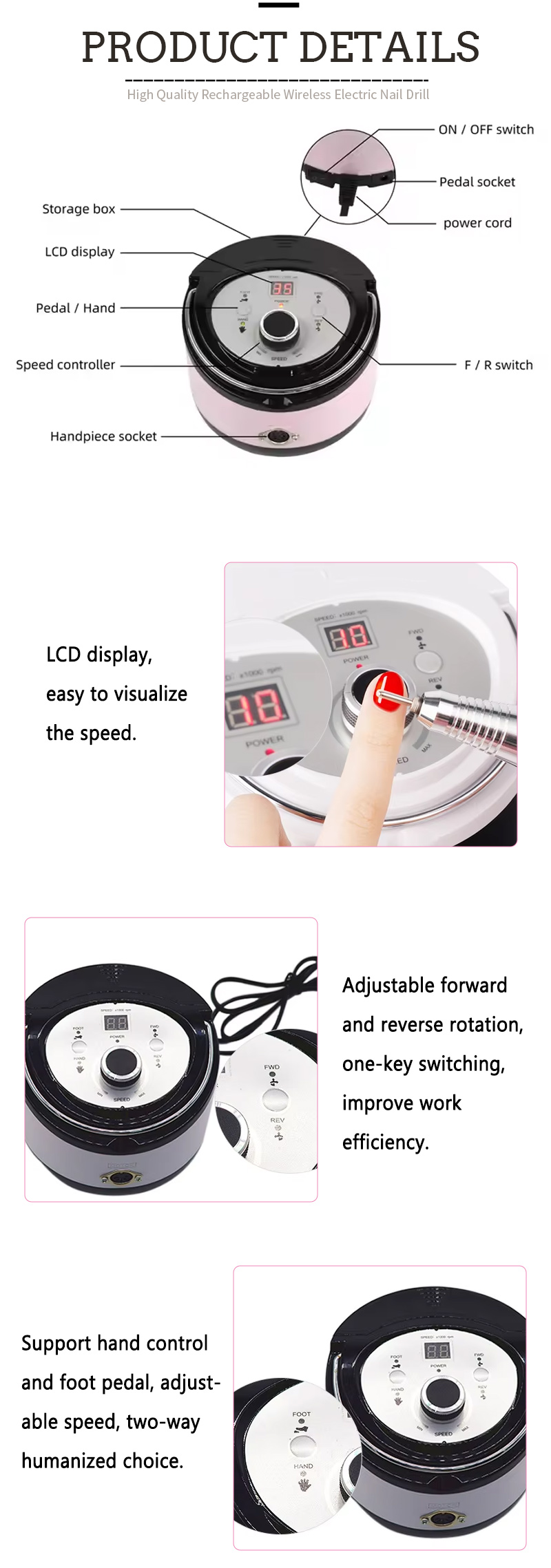 Rechargeable Cordless Nail Drill Set Near Me USB 45w 35000rpm