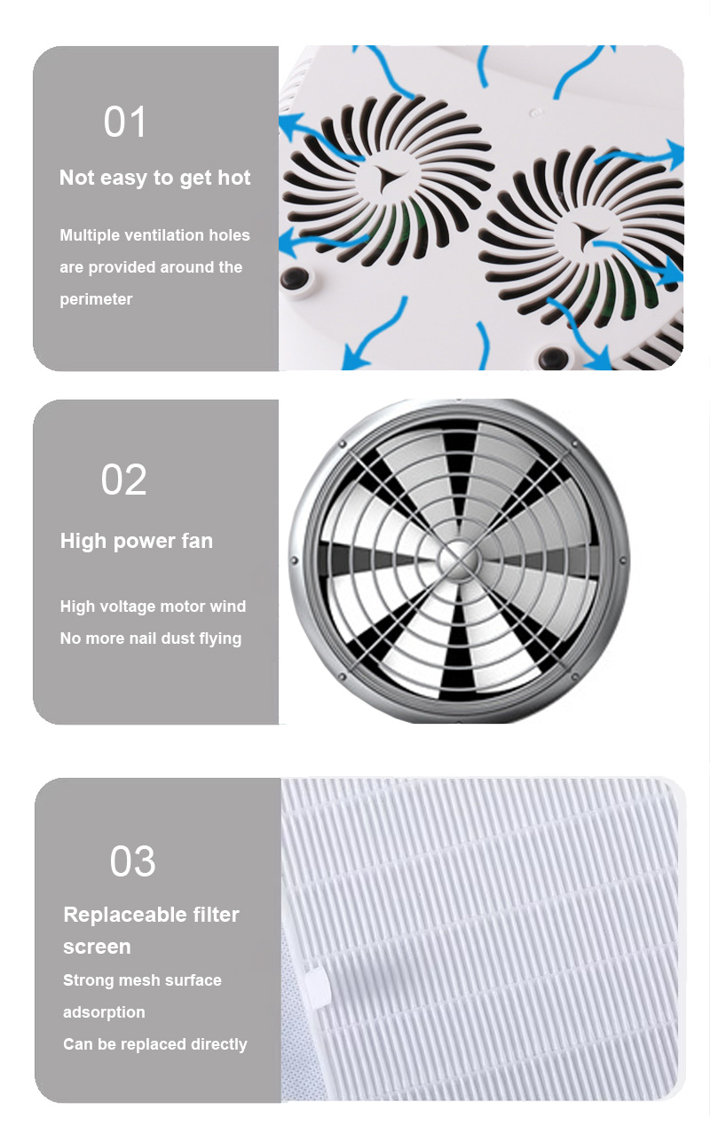 Samfurin yana tabbatar ko da bushewa m manne ba tare da turskage ba. Majiyoyinsa na Dual Haske suna ba da dumbin dumama don hana bayanan hannu da ido mai laushi don hannuwansu bushewa.