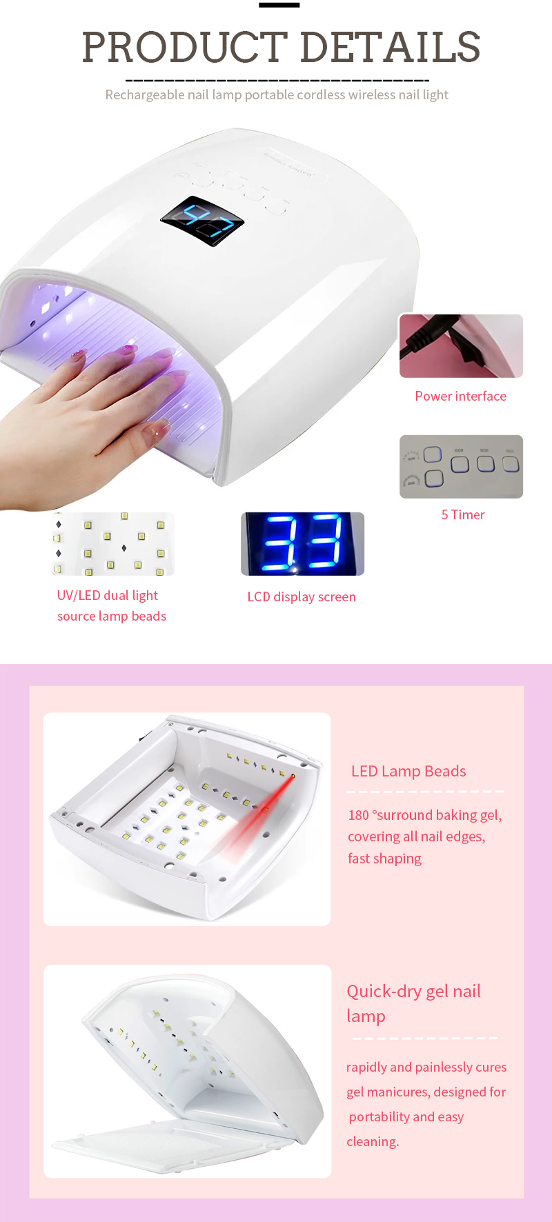 Samfurin yana tabbatar ko da bushewa m manne ba tare da turskage ba. Majiyoyinsa na Dual Haske suna ba da dumbin dumama don hana bayanan hannu da ido mai laushi don hannuwansu bushewa.