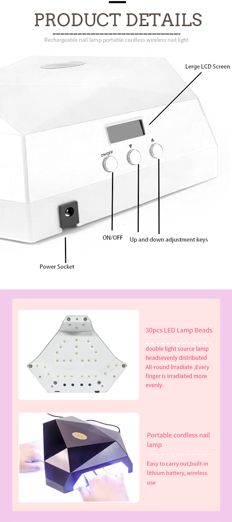 Samfurin yana tabbatar ko da bushewa m manne ba tare da turskage ba. Majiyoyinsa na Dual Haske suna ba da dumbin dumama don hana bayanan hannu da ido mai laushi don hannuwansu bushewa.
