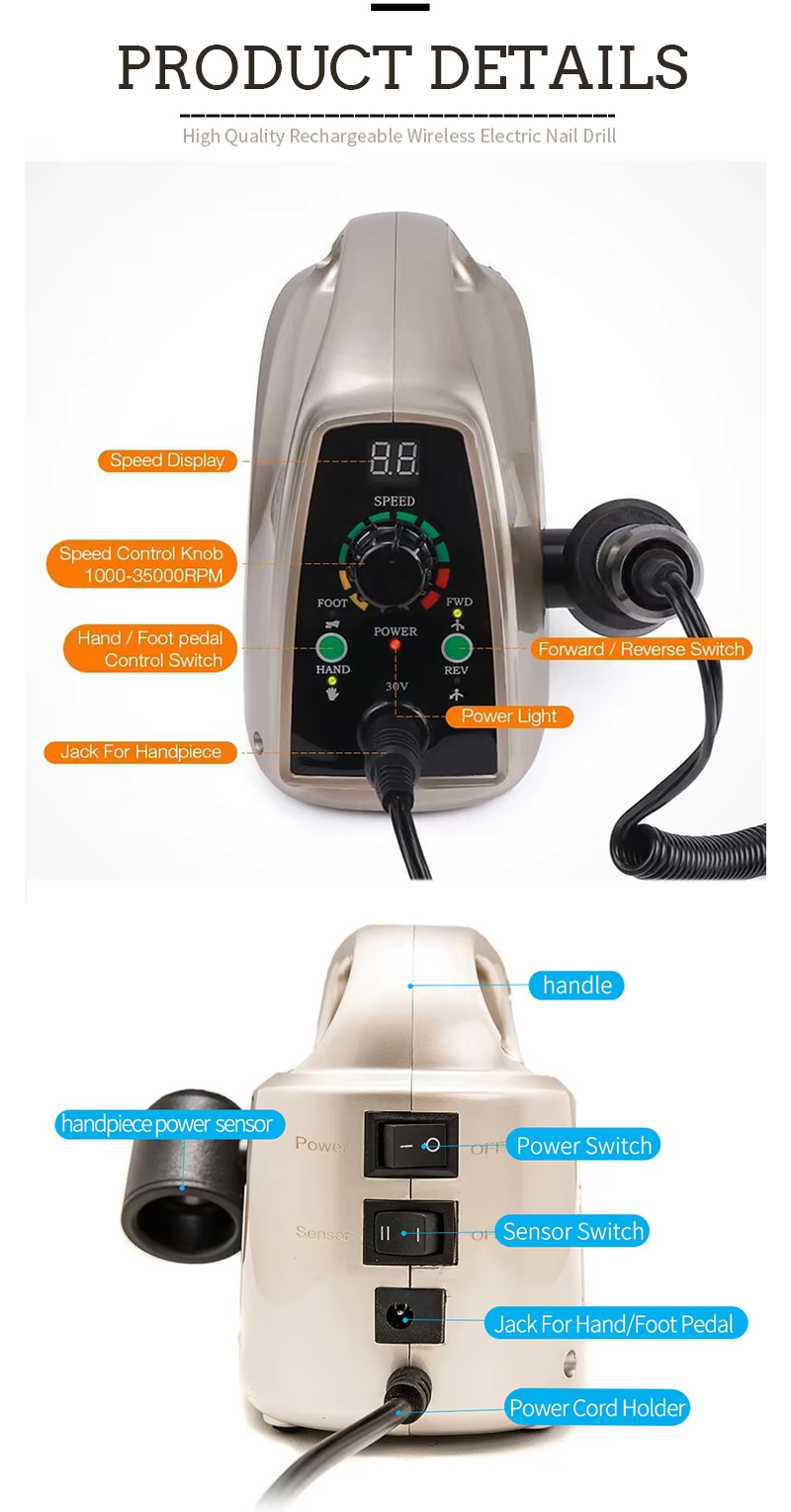 Nail Drill Electric Ba Sauƙi Don Lalacewa Kayan Hannu 65w 35000rpm