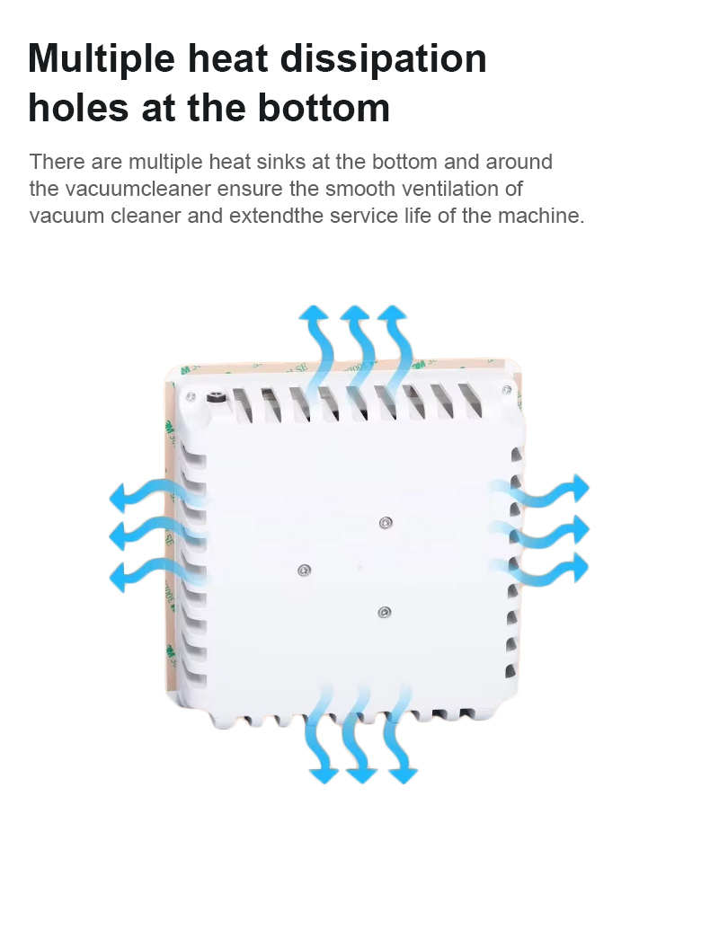 A kasan samfurin yana da ramuka masu sanyaya don samun iska mai kyau, kuma injin tsabtace an tsara shi tare da mawuyacin sanyaya a ƙasan da kuma ko'ina don tabbatar da iska mai laushi da kuma mika rayuwar injin.