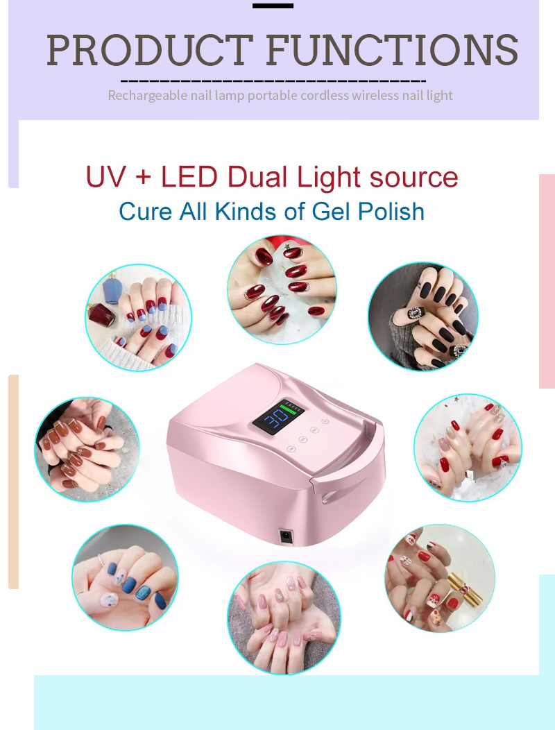 2, mai caji ƙusa mai ɗaukar hoto mai haske mai haske 96W sanye take da tushe mara zurfi.