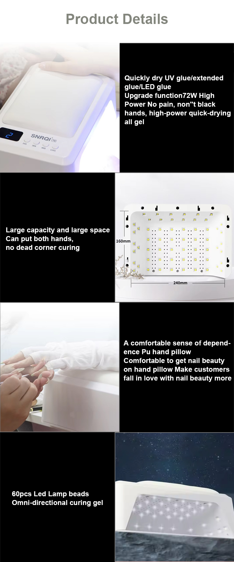 • Manyan kwararan fitila na LED don saurin warkewar gel na daƙiƙa 10