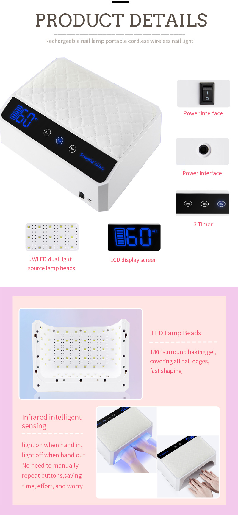 Samfurin yana tabbatar ko da bushewa m manne ba tare da turskage ba. Majiyoyinsa na Dual Haske suna ba da dumbin dumama don hana bayanan hannu da ido mai laushi don hannuwansu bushewa.