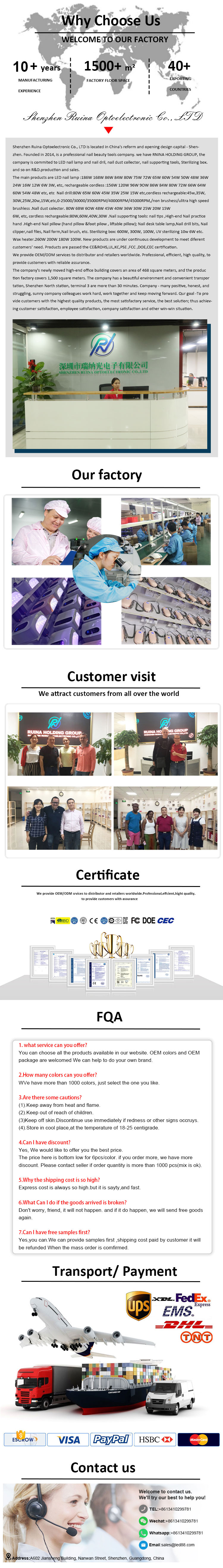 한국어Shenzhen Ruina Optoelectronics Co., Ltd., a matsayin babban masana'anta na kasar Sin, mai ba da kaya, da mai fitar da fitilar ƙusa tare da aikin ƙidayar lokaci, koyaushe yana ɗaukar falsafar neman ingantaccen inganci. Wannan alƙawarin ya sami fitilun ƙusa na UV mai amfani da gida da amincin abokan ciniki da yawa. Kyawawan ƙira, kayan albarkatu masu ƙima, ƙwaƙƙwarar aiki, da farashi mai fa'ida sosai - waɗannan su ne ainihin abin da kowane abokin ciniki ke tsammani, da abin da muke bayarwa. Tabbas, cikakken sabis na tallace-tallace daidai yake da makawa.