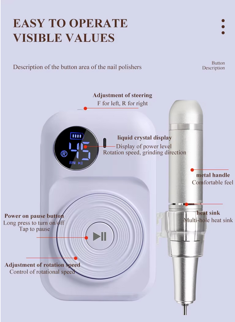 Nail Drill Electric Ba Sauƙi Don Lalacewa Kayan Hannu 65w 35000rpm