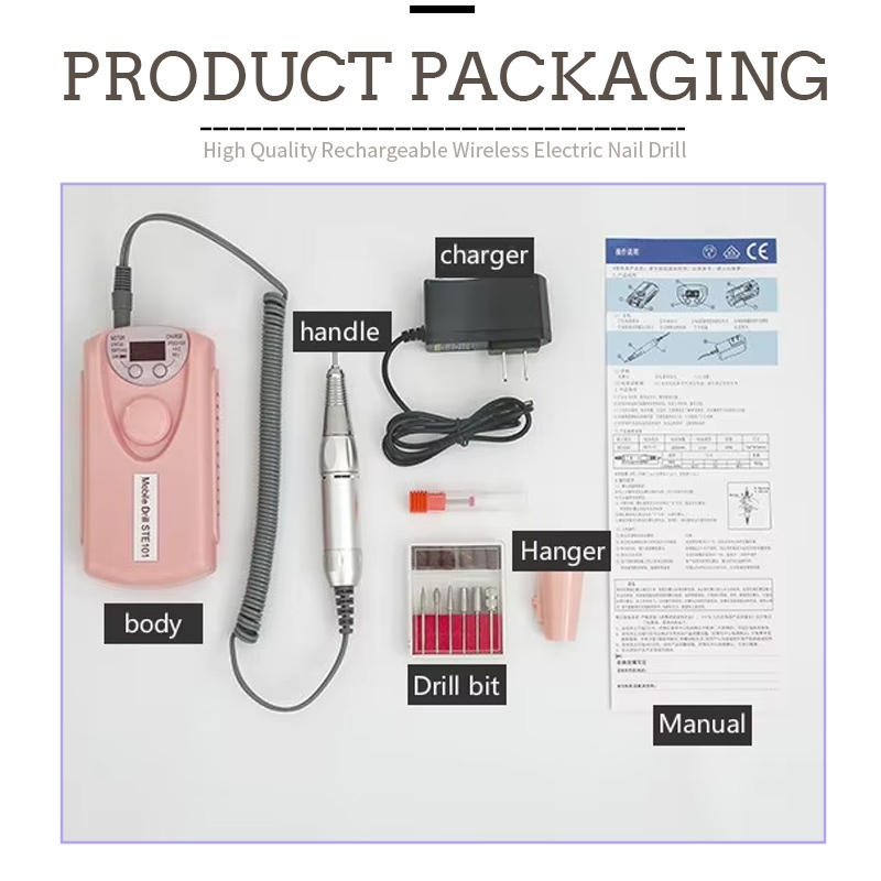 Abubuwan da ke cikin wannan ƙwararrun fakitin ƙusa na ƙusa mara igiyar lantarki yana da samfurin alƙalami mai yashi, kebul na cajin USB, littafin koyarwar samfur, da akwati mara nauyi da ɗaukuwa.