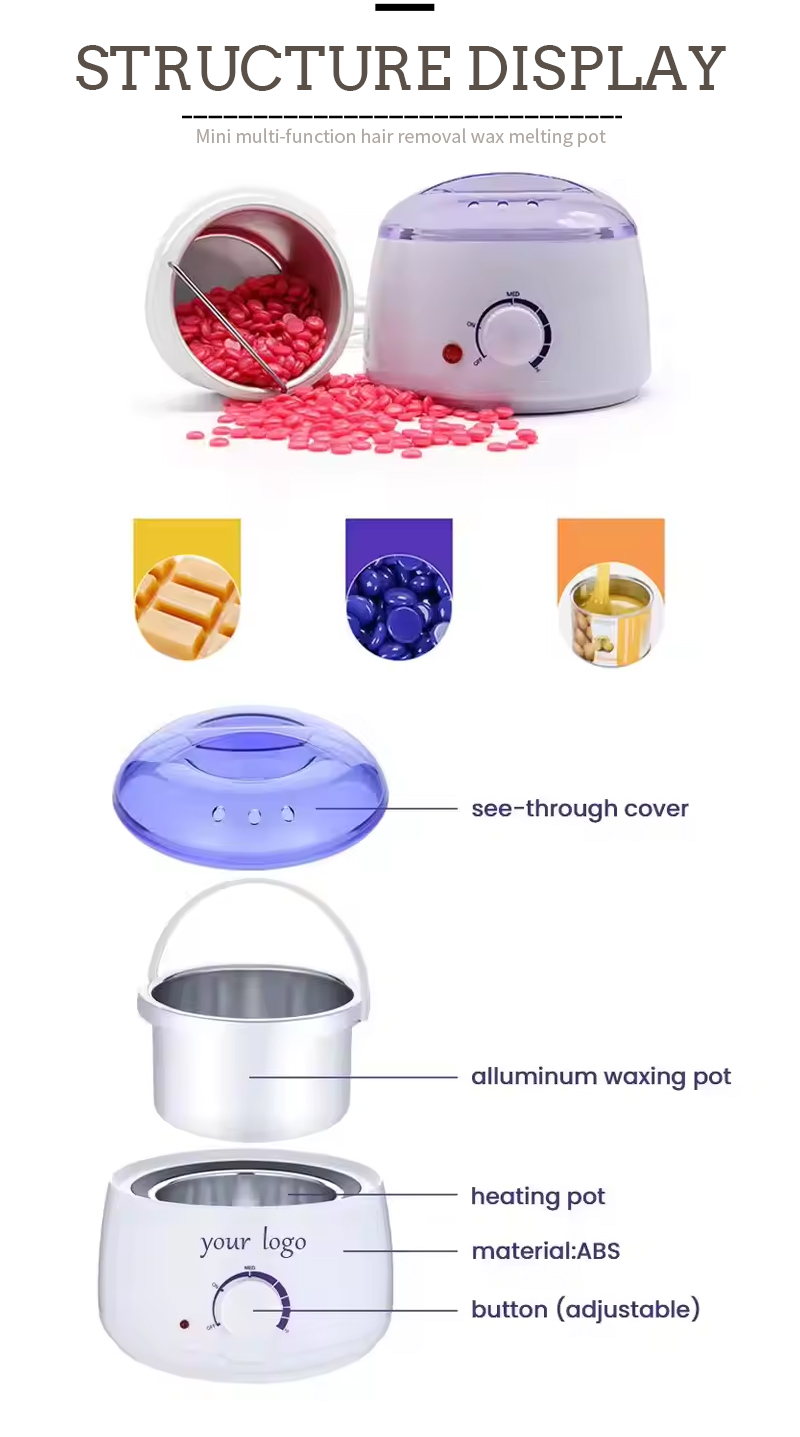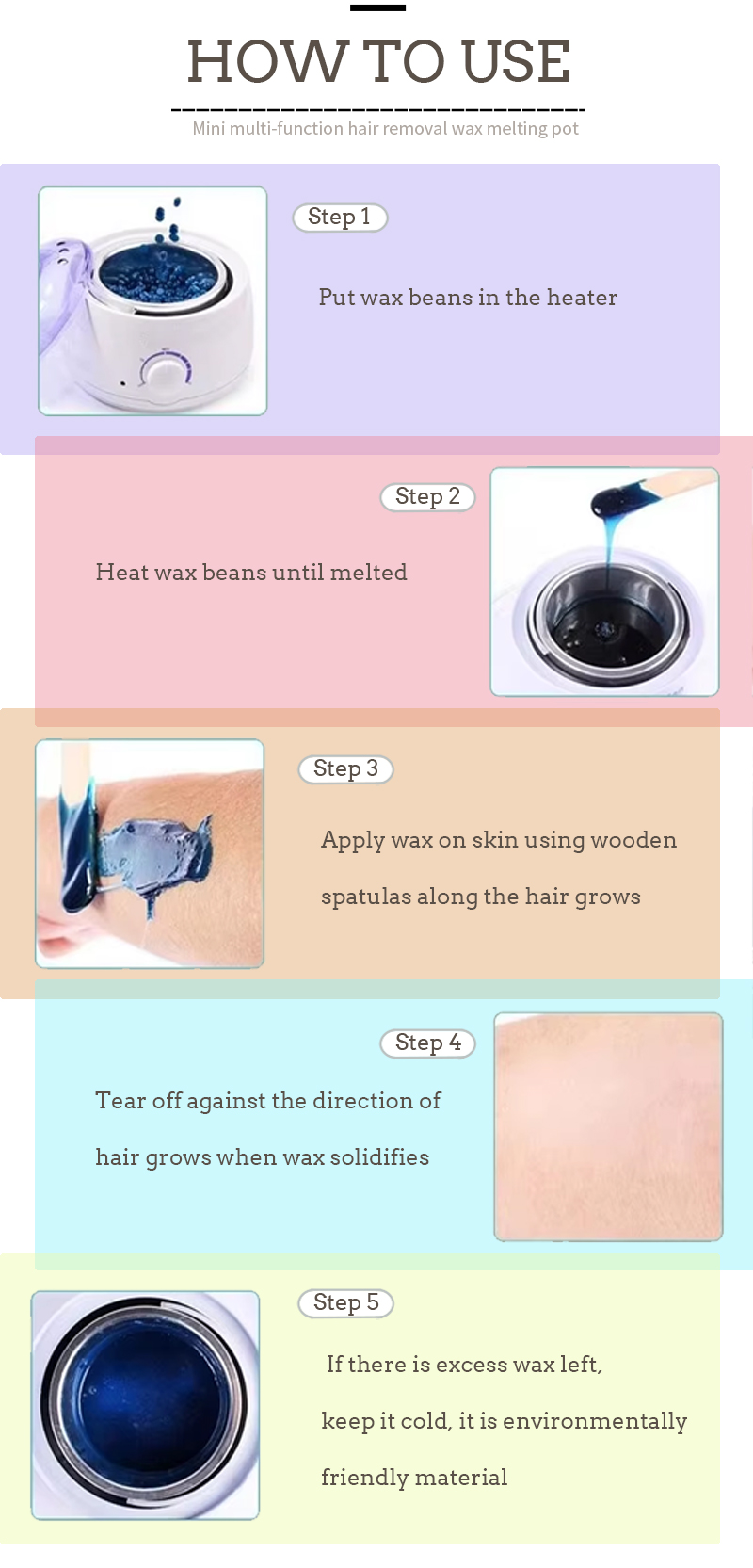 - Ya dace da kowane nau'in waxes: Hard daƙa da wuya, tsiri da ƙyallen, paraffin waxing