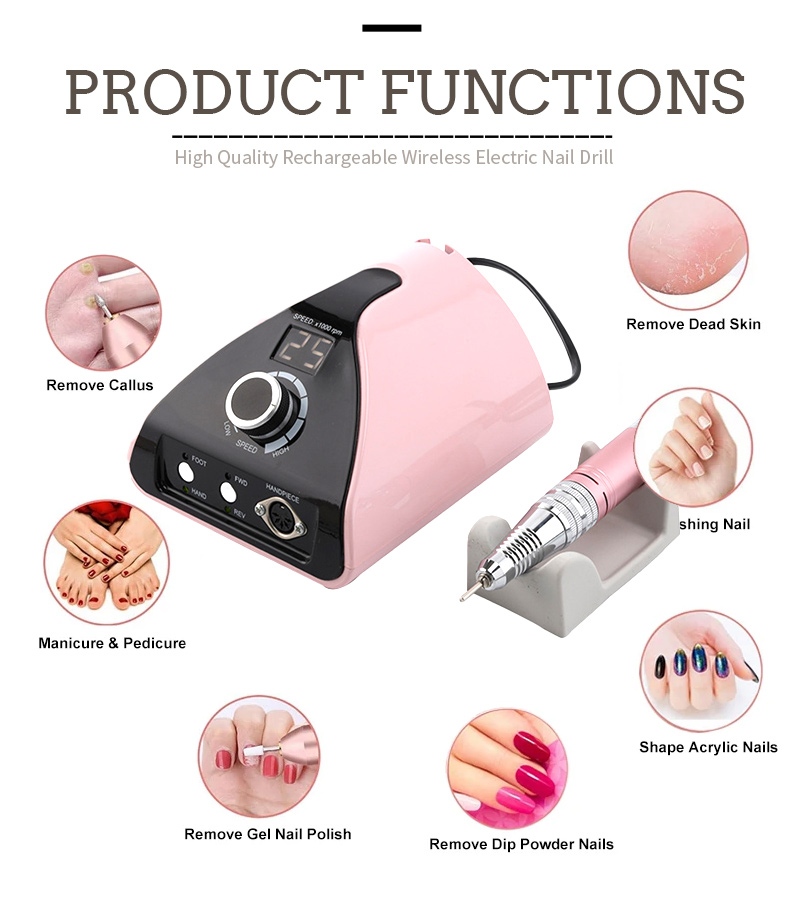 Wannan ƙwararriyar ƙwararriyar ƙusa rawar soja 35,000 rpm tana da launuka 2 don zaɓar daga, baki / fari / launin toka / shuɗi / ja / ruwan hoda / orange, launuka masu launi.