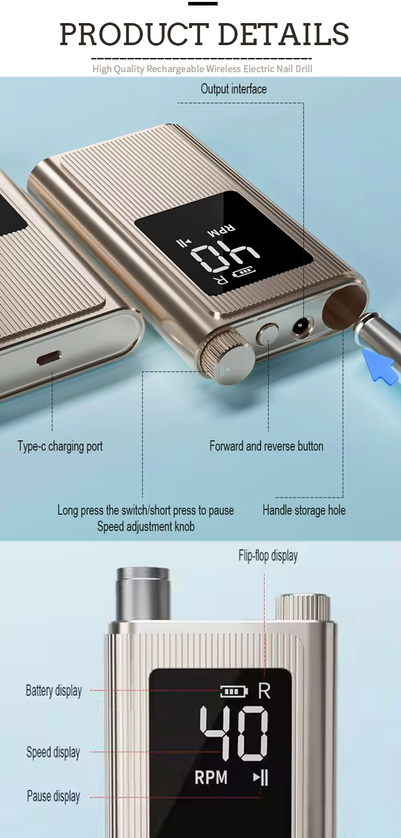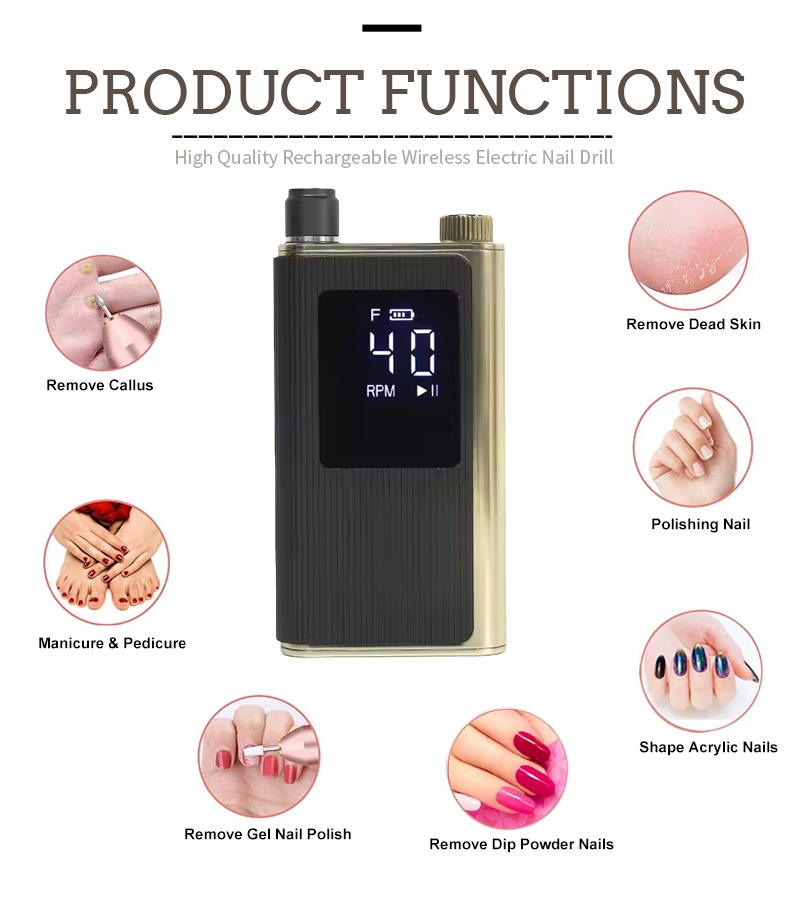 Saitin ƙusa mai cajewa Tare da Ƙarfin Hannu 45w 35000rpm