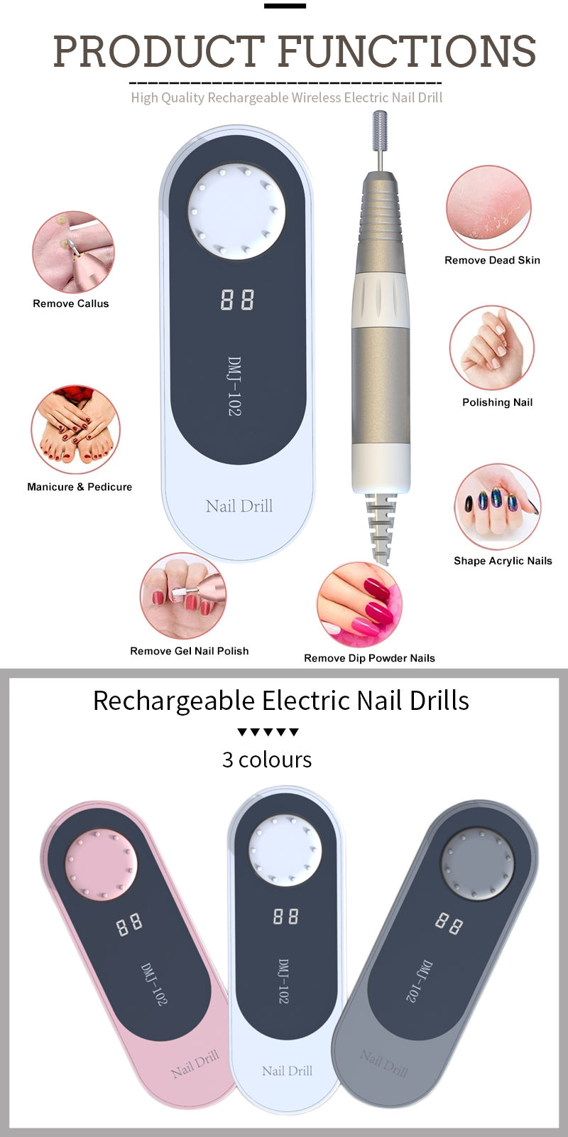 Nail Drill Electric Ba Sauƙi Don Lalacewa Kayan Hannu 65w 35000rpm