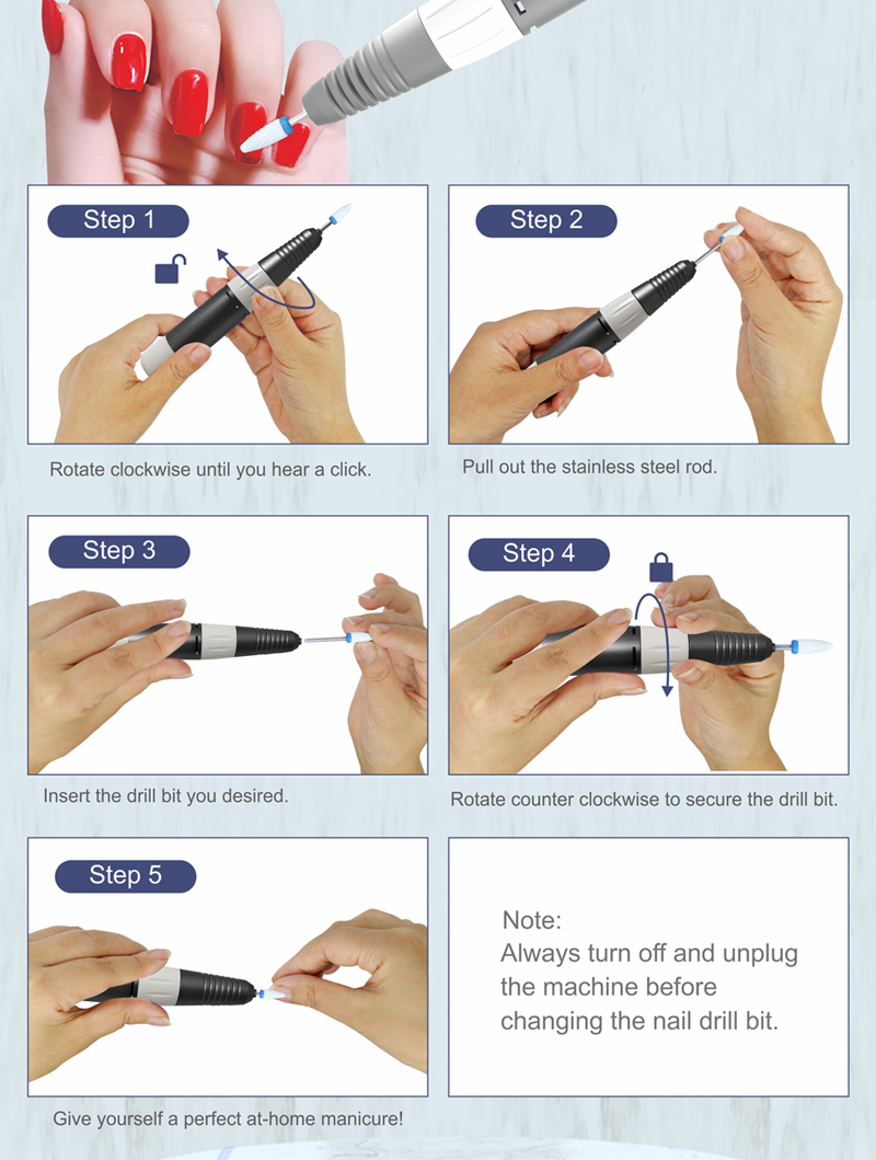 Nail Drill Set Electric To Remove Dip 65w 35000rpm
