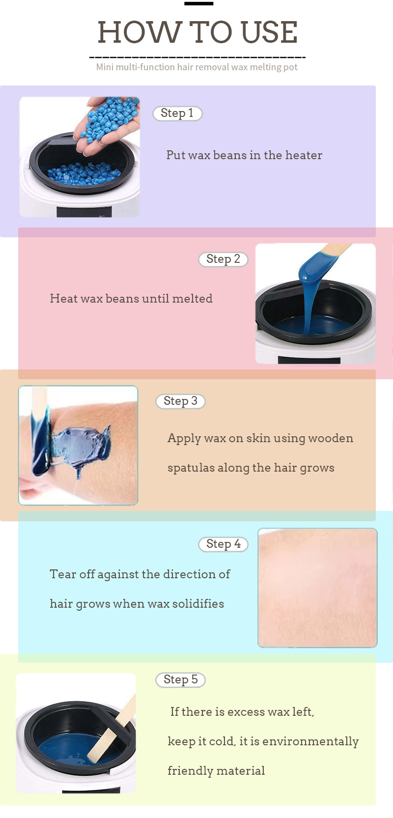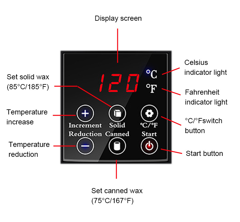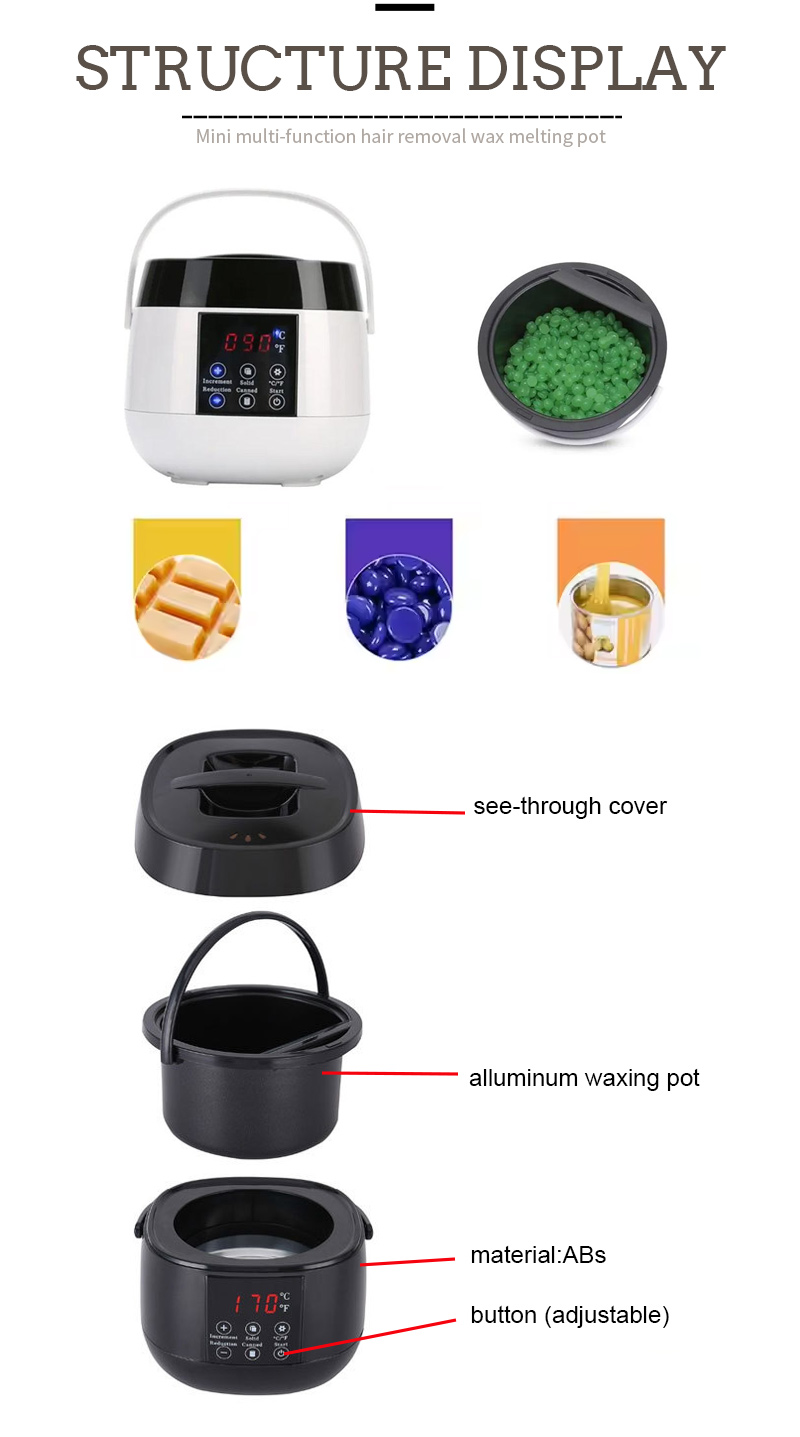 - Ya dace da kowane nau'in waxes: Hard daƙa da wuya, tsiri da ƙyallen, paraffin waxing