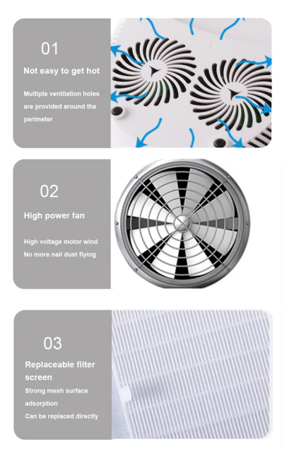 Haɗuwar Fitilar Farce Mai Hannun Haɗin Sau Uku tare da Matashin kai yana tabbatar da bushewar manne ba tare da raguwa ba. Maɓuɓɓugar haskensa biyu suna ba da ɗumi mai laushi don hana canza launin hannu da damuwa ido, wanda ya dace da hannaye da ƙafafu biyu, yana ba da sakamako mai saurin bushewa.